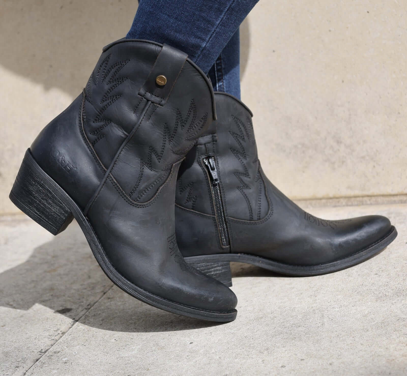 Handcrafted in Portugal, our Texan Ankle leather cowgirl boot features an upper made from premium quality leather with a classic pointed toe design. An inside half zip makes getting these leather boots on and off a breeze. Finished beautifully with an intricate stitch detailing embossed on the heel and our signature Oak & Hyde brass pin.